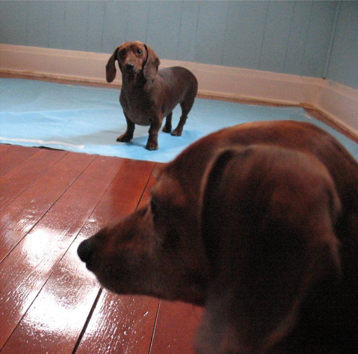 DoxieWear's professional fit models: Buster and Barkley.
